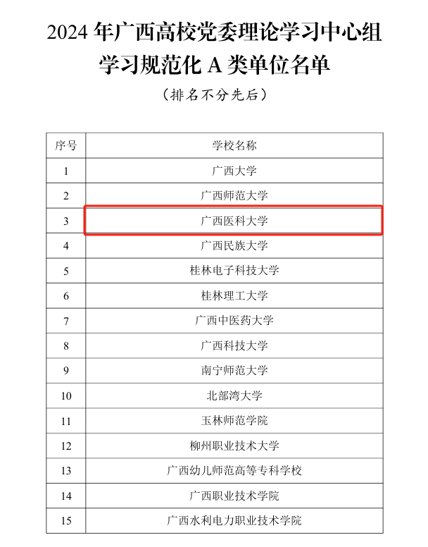 近日,自治区党委教育工委办公室下发了关于公布2024年广西高校党委理论学习中心组学习规范化A类单位的通知,英国上市公司365获评2024年广西高校党委理论学习中心组学习规范化A类单位。